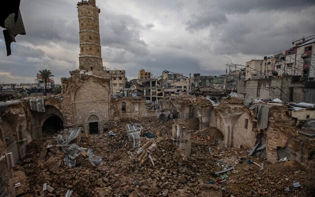 A view of the Great Omari Mosque in Gaza City after it was damaged by an Israeli strike during the war with Hamas, Feb. 12, 2025. (AP/Jehad Alshrafi)