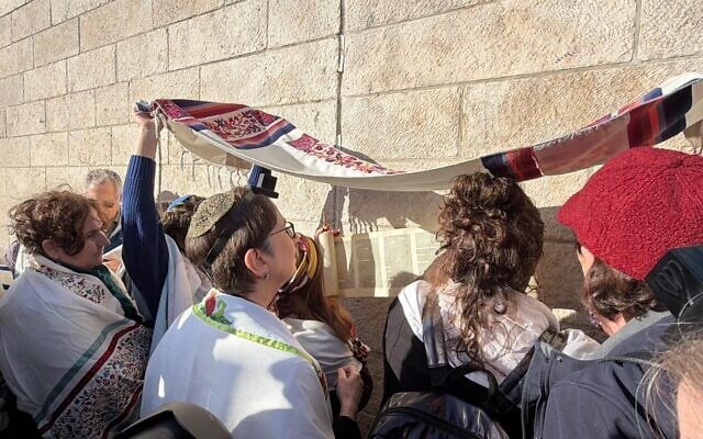 Women of the Wall members hold a prayer service by the entrance of the Western Wall Plaza on February 18, 2026. (Women of the Wall)