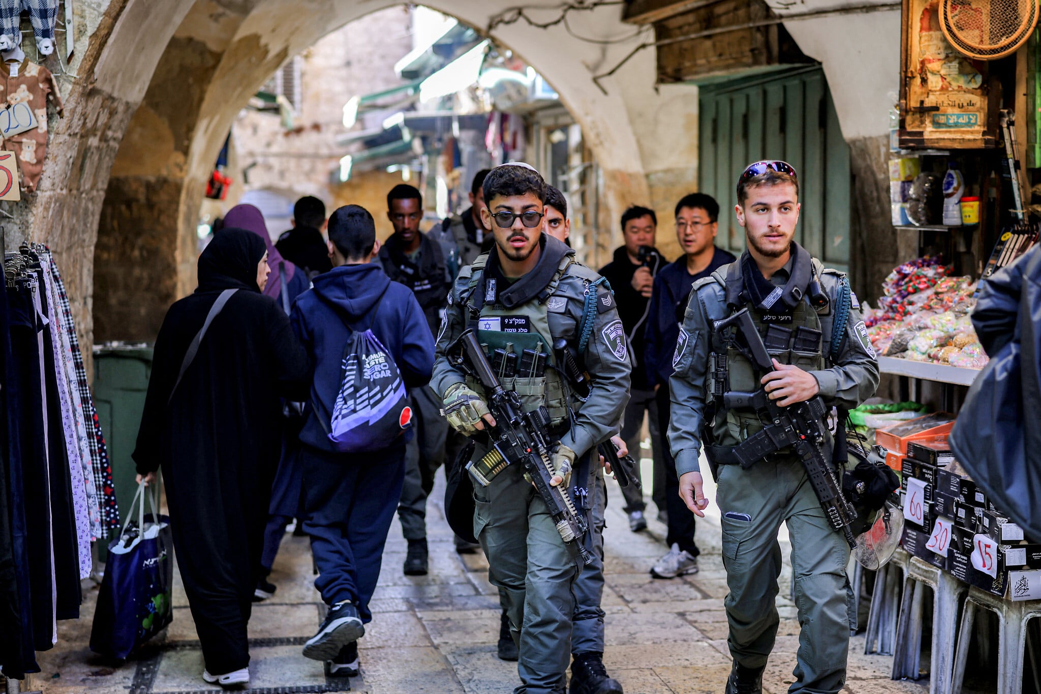 Israelisecurity forces along an alley in the Old City of Jerusalem on the first Friday of the Muslim holy month of Ramadan on February 20, 2026. (Photo by Ilia YEFIMOVICH / AFP)