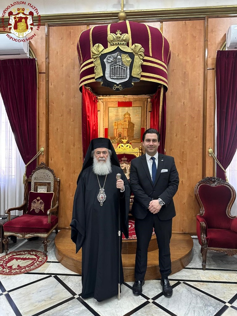 On Saturday, 21 February 2026, Patriarch Theophilos of Jerusalem received Konstantinos Kefalogiannis, a pilgrim from Crete, together with two Romanian Priests.