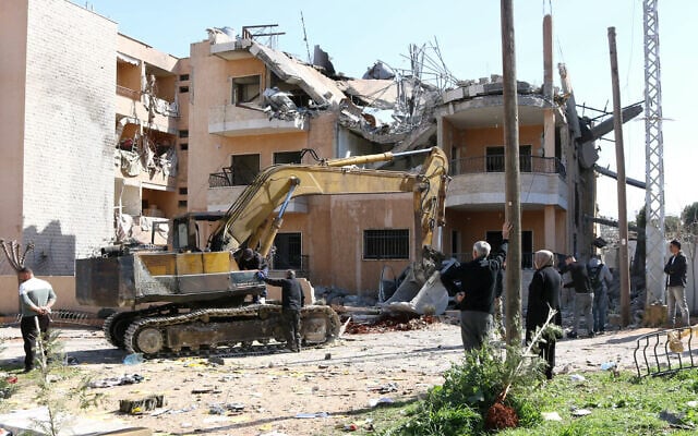 An excavator clears rubble of buildings destroyed in IDF airstrikes in the village of Ali al-Nahri in the center of Lebanon’s eastern Beqaa Valley region on February 21, 2026. (AFP)
