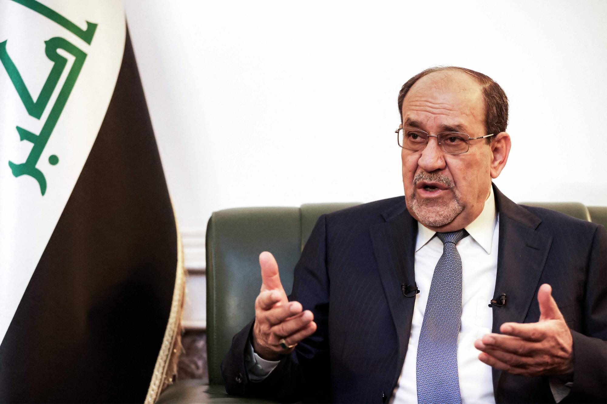 Iraq’s former PM and candidate for the premiership, Nouri al-Maliki, speaks during an interview with AFP at his office in the Green Zone in Baghdad on February 23, 2026. (AFP)