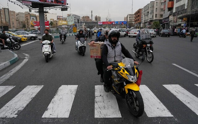 People drive their motorbikes in a square in downtown Tehran, Iran, February 24, 2026. (Vahid Salemi/AP)