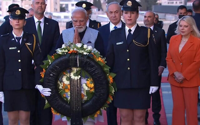 “Narendra, my dear friend, I am deeply, deeply moved by your visit here today,” Netanyahu said. “Because I have to be diplomatic, I will not rank it. I’ll get into trouble. But I’ve never been more moved than by your visit here with us, a great friend of Israel, a great champion of the Indian-Israeli alliance, and a great leader on the world stage.”