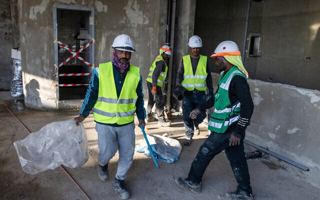 Indian builders work on a construction site in Tel Aviv on December 23, 2024. (Menahem KAHANA / AFP)