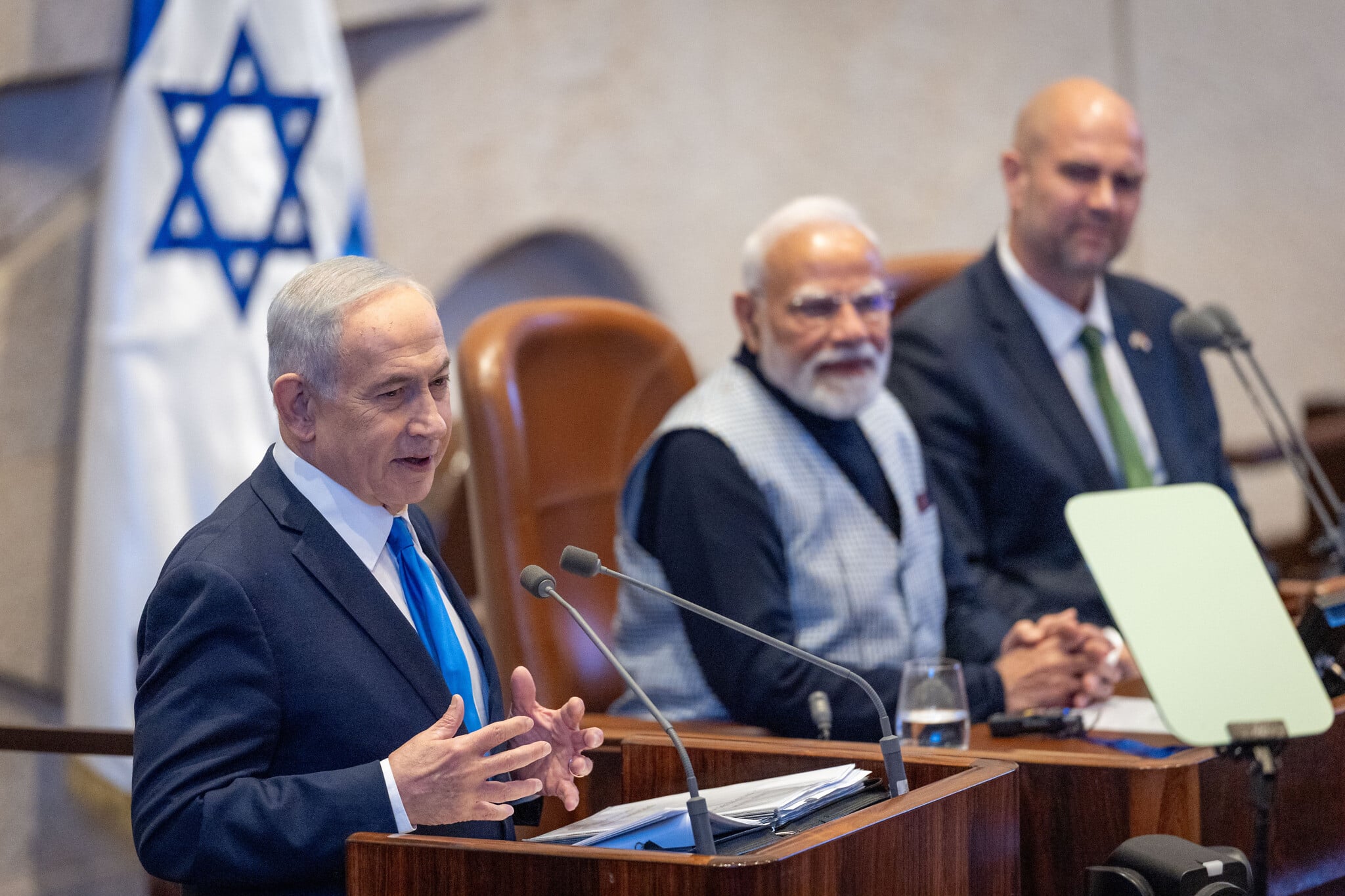 He later presented Modi with the newly established Medal of the Knesset to honor him for his “significant contributions to the State of Israel and the Jewish people.”
