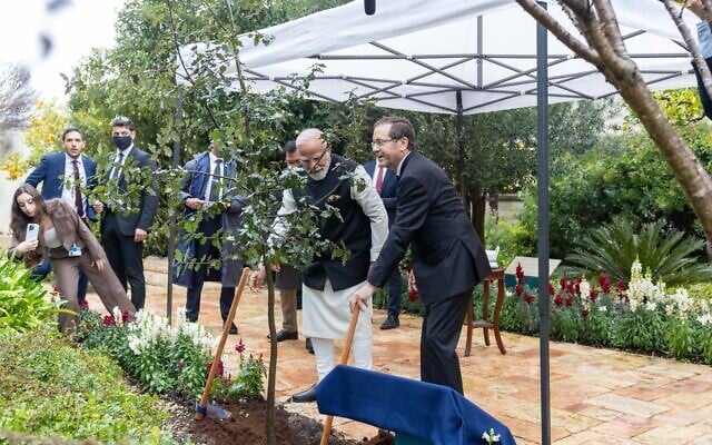 Modi also met with President Isaac Herzog, and the pair planted an oak tree together in the garden outside the president’s residence in Jerusalem.