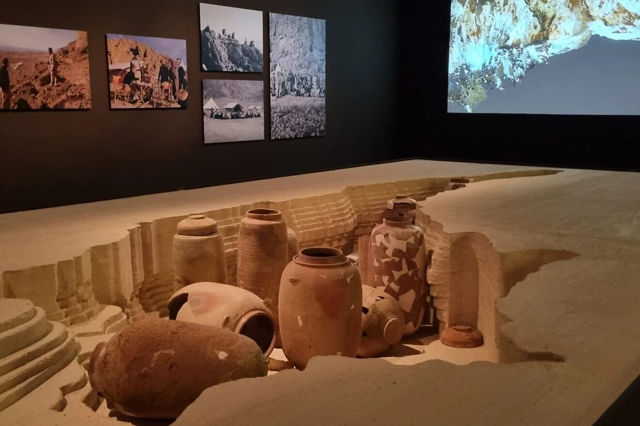 Visitors to the current exhibition first pass pottery jars resembling those in which the scrolls were discovered. A short introductory film traces the manuscripts’ journey from the caves of Qumran to Jerusalem before guests enter the stark white Scroll Gallery, where the parchment stretches across a specially designed case.