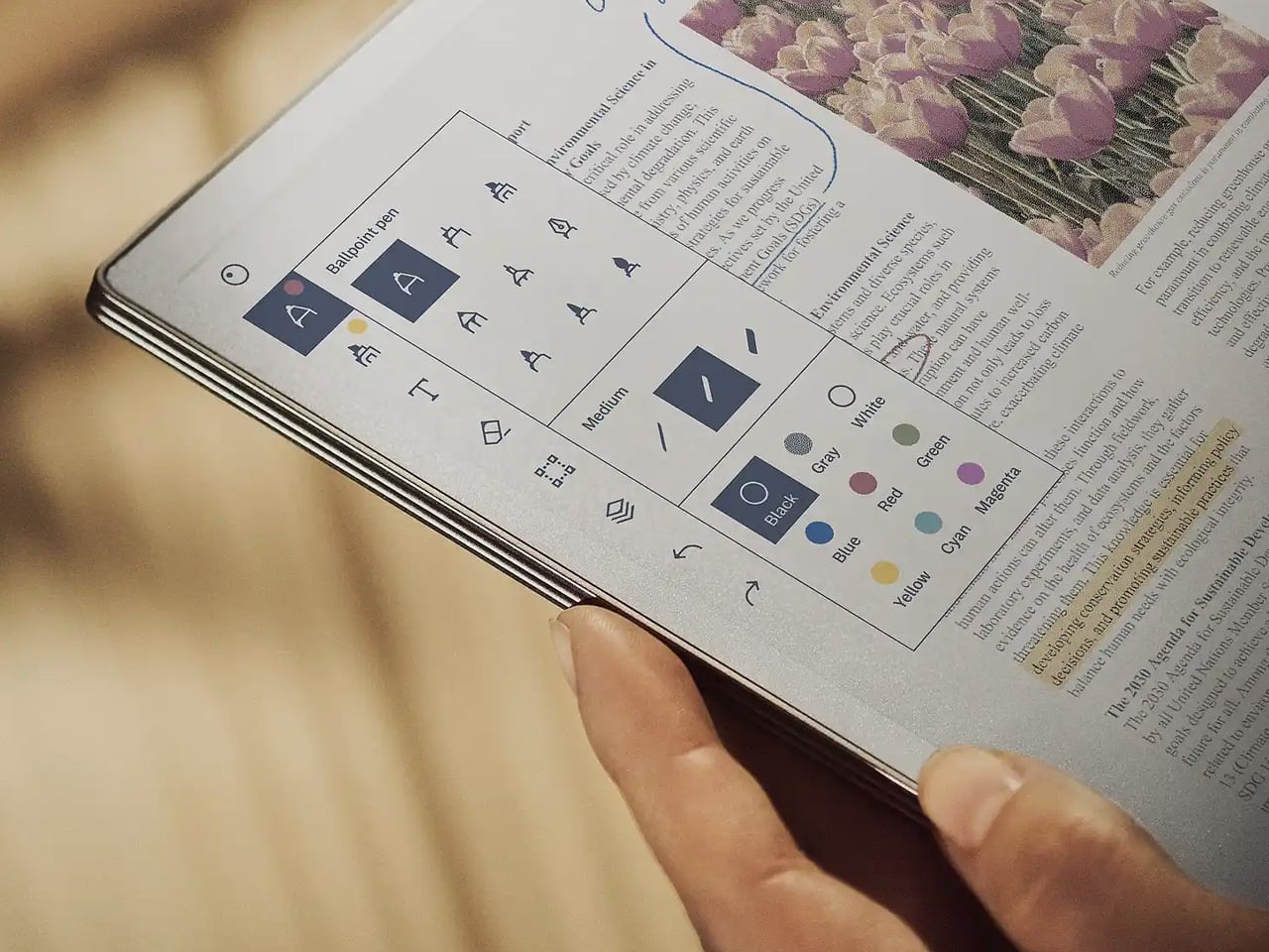 Canvas Color display delivers full color without a backlit panel, so long writing sessions never leave your eyes sore.
