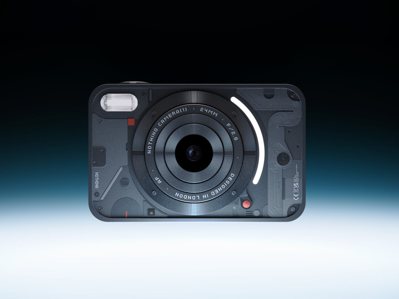 Photography moved inside phones and got buried under notifications. Camera (1) imagines what it looks like when shooting becomes a thing you do with your hands again. Camera (1) is a concept design with a compact, metal body sized to slip into a pocket but solid enough to fill the hand. All the main controls live on one edge: a shutter, a circular mode dial with a glyph display, and a D-pad your thumb can reach without shifting your grip or touching a screen. The design draws from Nothing’s hardware-forward language, with circuit-like relief on the front panel, small red accents, and a bead-blasted metal shell that feels considered across every surface.