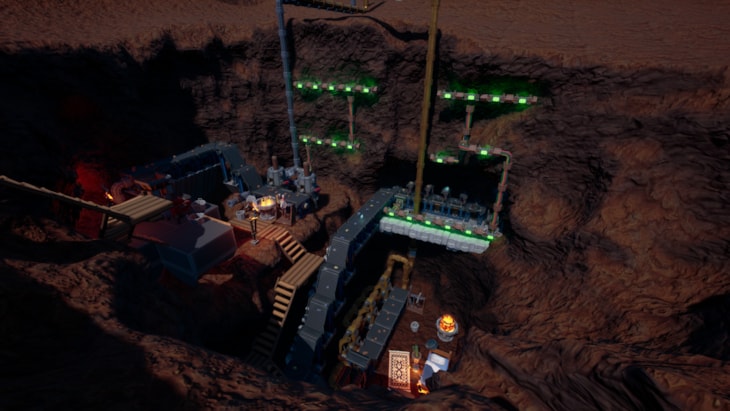 Conveyor belts, automated harvesters, drills, and piping to shape and craft full automated smelting factories and pull ore out of the earth at scale.