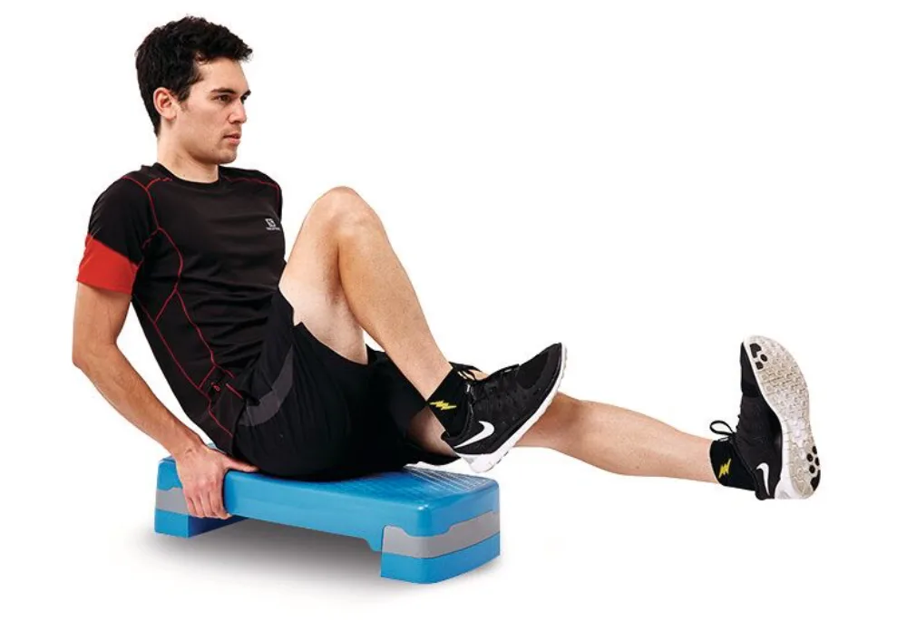 Sitting on an exercise bench with your hands supporting you at your sides, raise your legs and perform an alternate leg cycling action, ensuring that your toes are pulled towards your body on the straightening leg. You should try to maintain a straight back throughout this exercise.