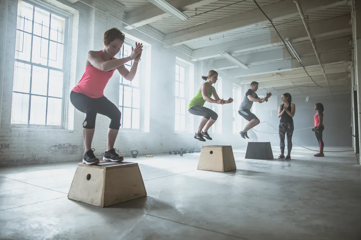 Explosive exercise could include powerful movements such as squats and deadlifts (typically with lighter weights, so you can focus on rapid lifts), kettlebell swings or medicine ball throws, plyometric work such as box jumps, skipping or agility ladders, or sprints when running, cycling or swimming.