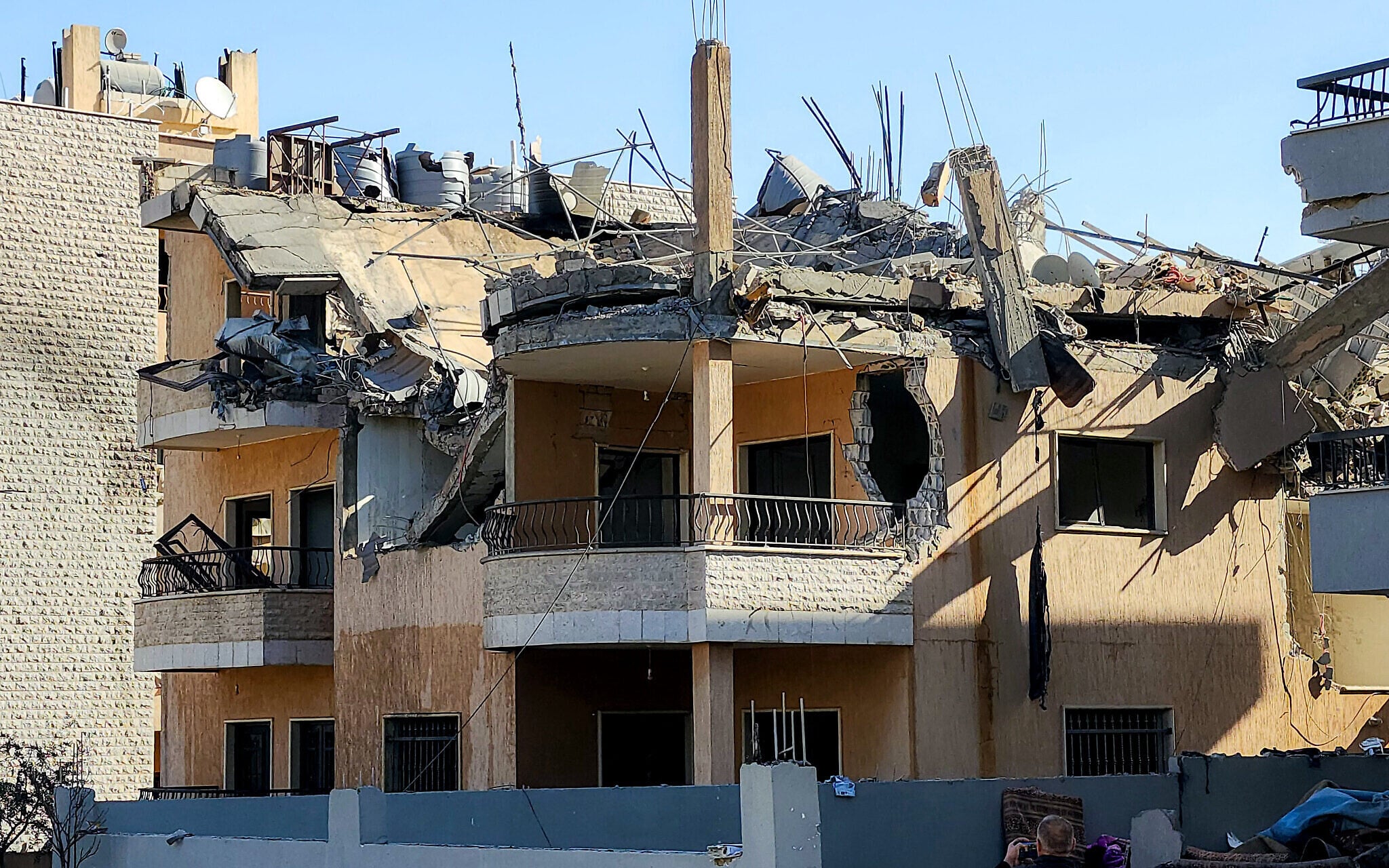 A heavily-damaged building is pictured in the village of Ali al-Nahri in the center of Lebanon’s eastern Beqaa Valley region on February 21, 2026, following Israeli strikes. (AFP)
