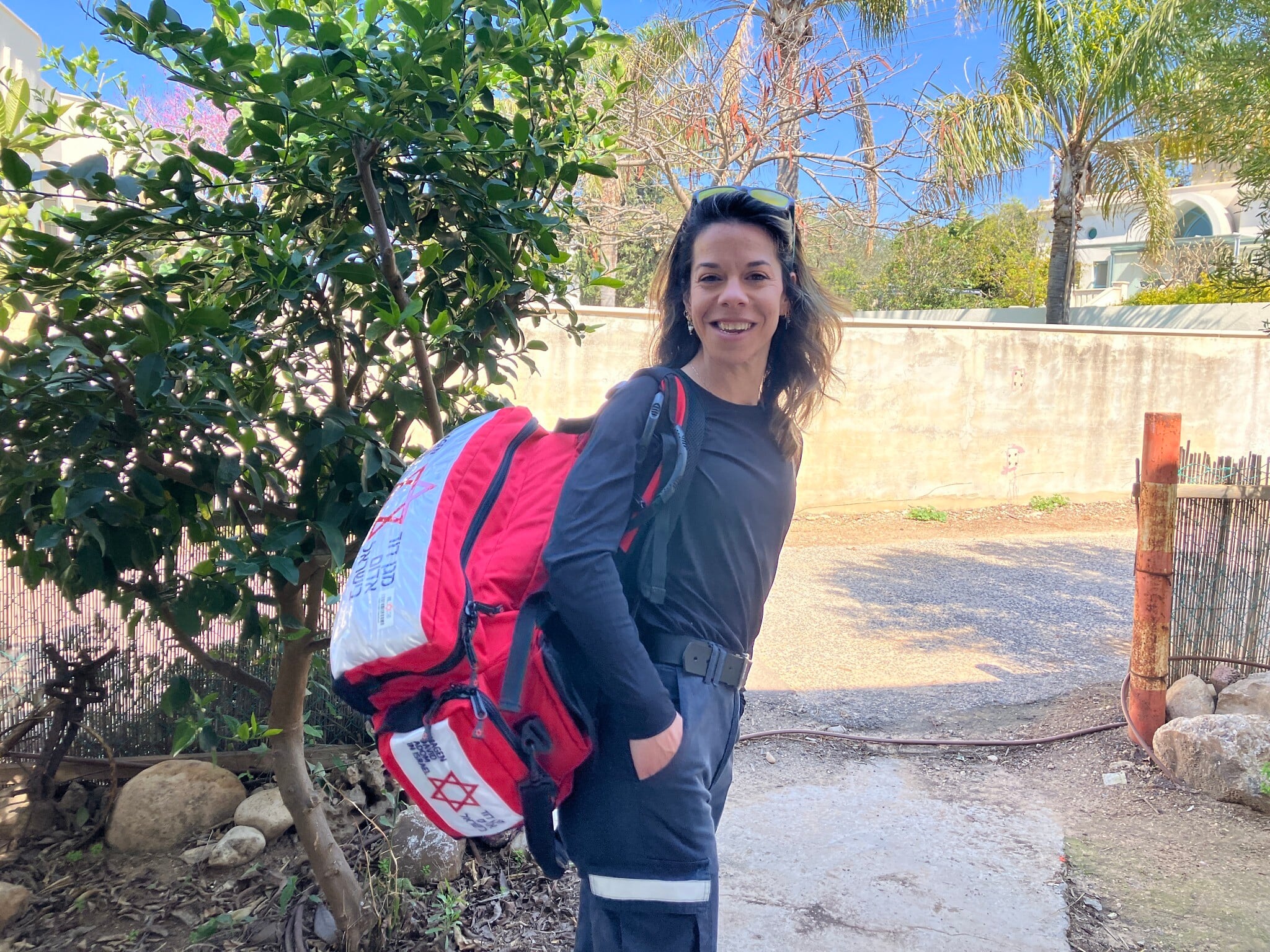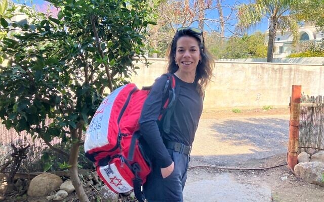 Michal Schwartz, a Magen David Adom volunteer from Moshav Liman, on her way to volunteer on March 10, 2026. (Diana Bletter/Times of Israel)