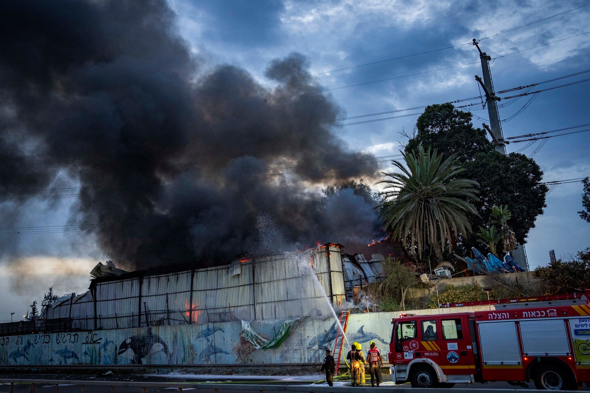 A cluster munition also hit a highway in the center of the country, causing a crater, while an impact in Holon sparked a fire in a building.
