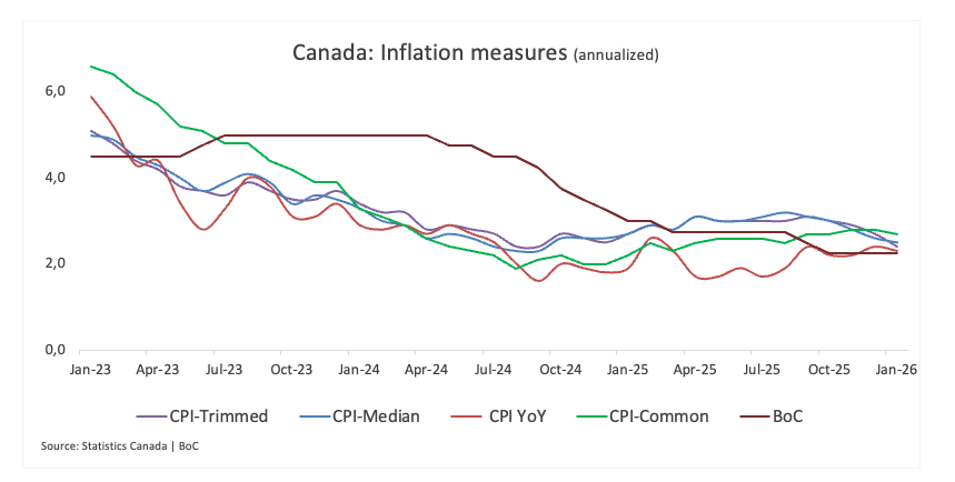 Economists anticipate headline CPI rising by 2.1% YoY in February, still above the BoC’s target but easing from January’s 2.3% annual increase. On a monthly basis, prices are projected to rise 0.4%. Policymakers will also keep a close eye on the core measure, which excludes food and energy, that is set to increase by 2.4% after printing at 2.6% YoY in the opening month of 2026.
