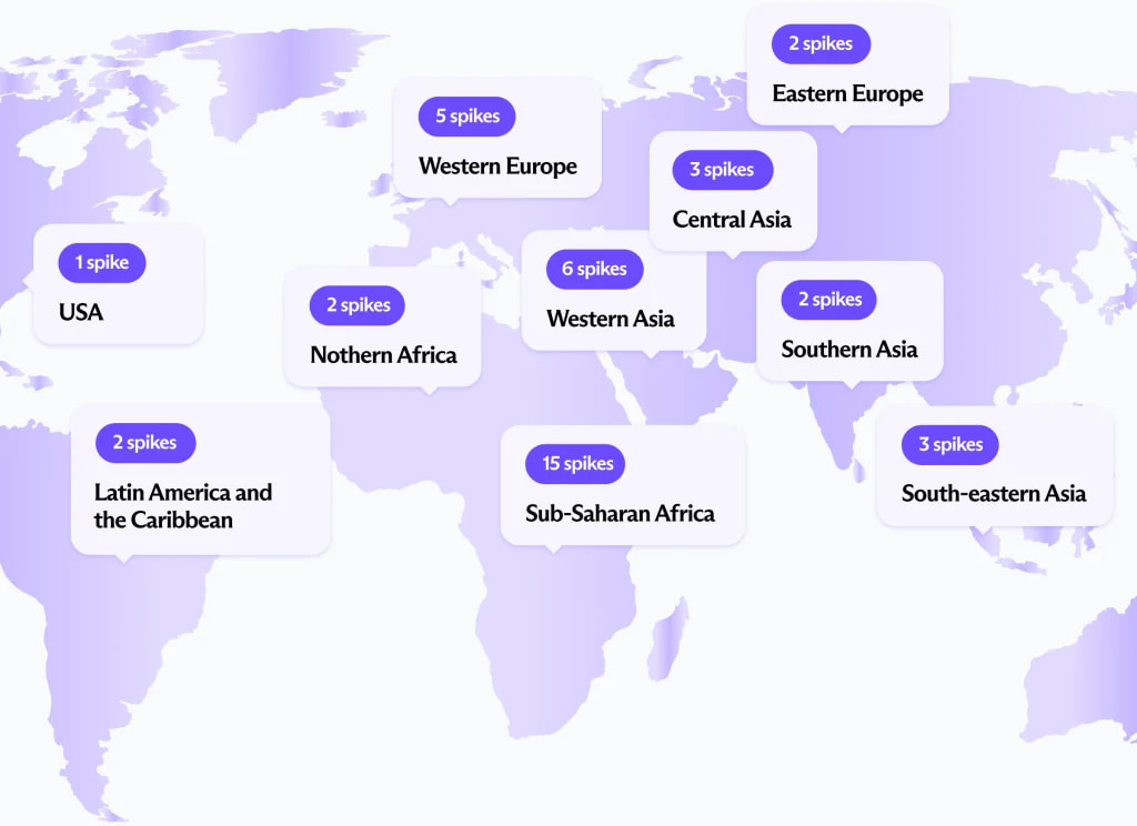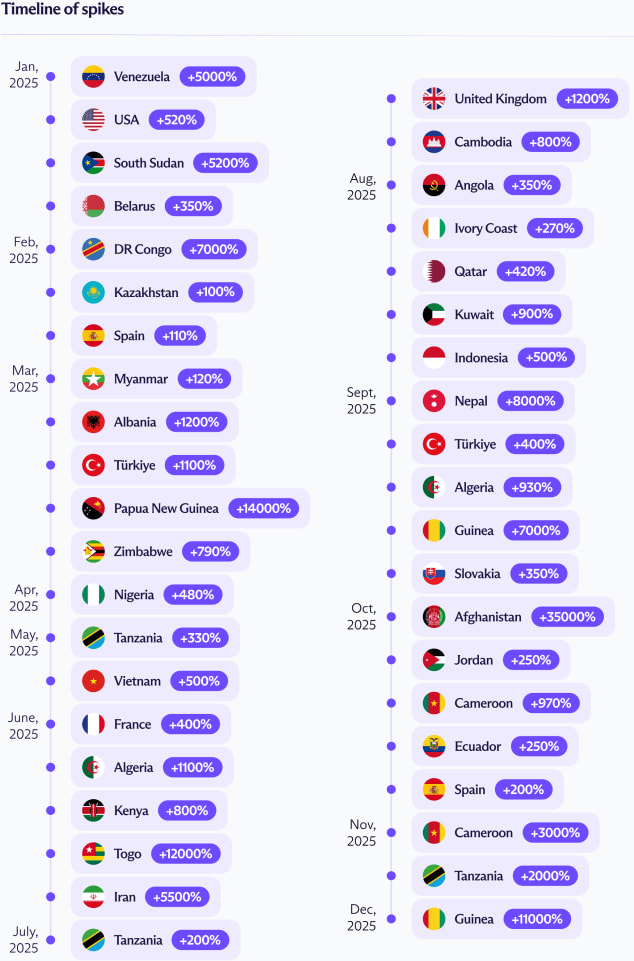 In a year-end censorship report, Proton VPN said it recorded sudden signup spikes of more than 100% above normal levels in 62 countries last year. According to the VPN vendor, 10 countries saw at least one spike above 1,000%, six exceeded 5,000%, and four passed 10,000%.
