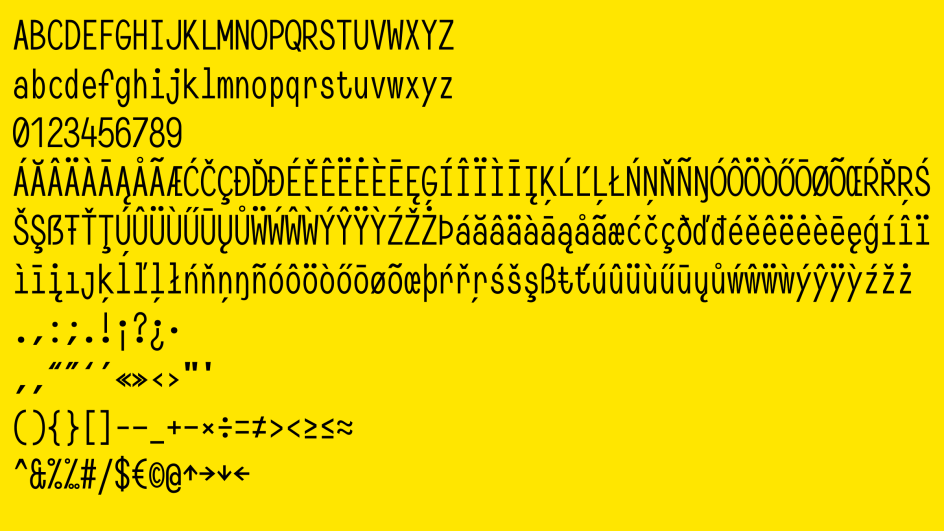 The family spans ten weights with a matching monospaced variant, making it suitable for complex typographic systems across a wide range of applications. Extensive stylistic alternates allow designers to fine-tune the tone of each piece, adjusting the typeface’s level of neutrality and expression project by project.