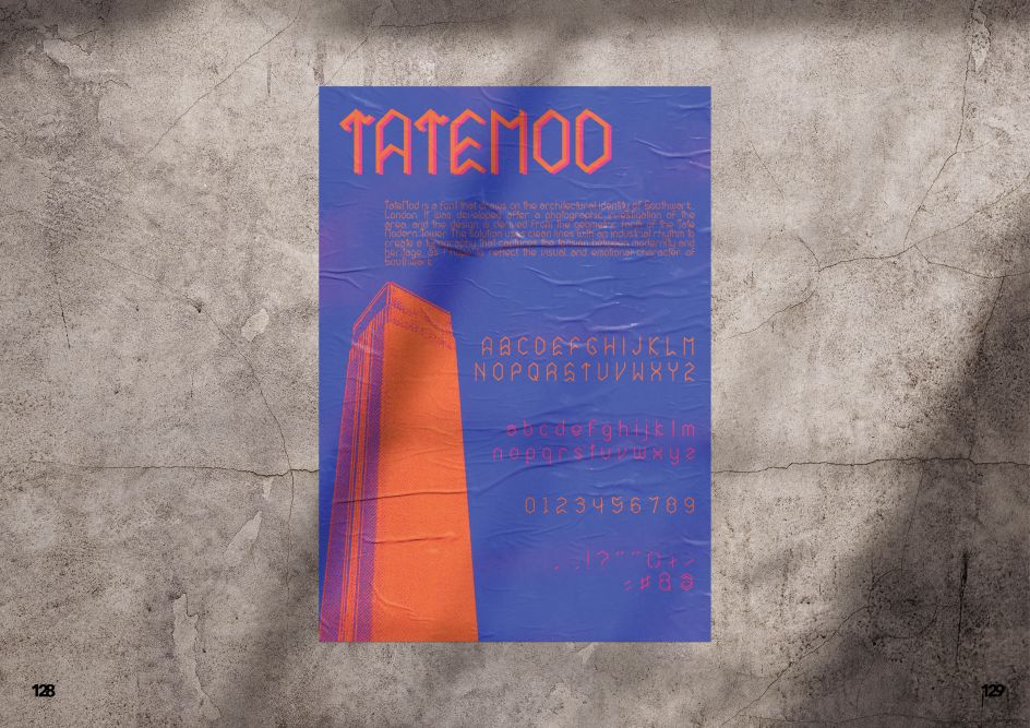Tatemod closes this month’s round-up with something that feels very site-specific. Jose Martinez’s free display typeface was developed in direct response to the architectural identity of Southwark, and specifically to the Tate Modern, whose switched-off turbine hall and brick chimney stack have become one of the most recognisable silhouettes in London.