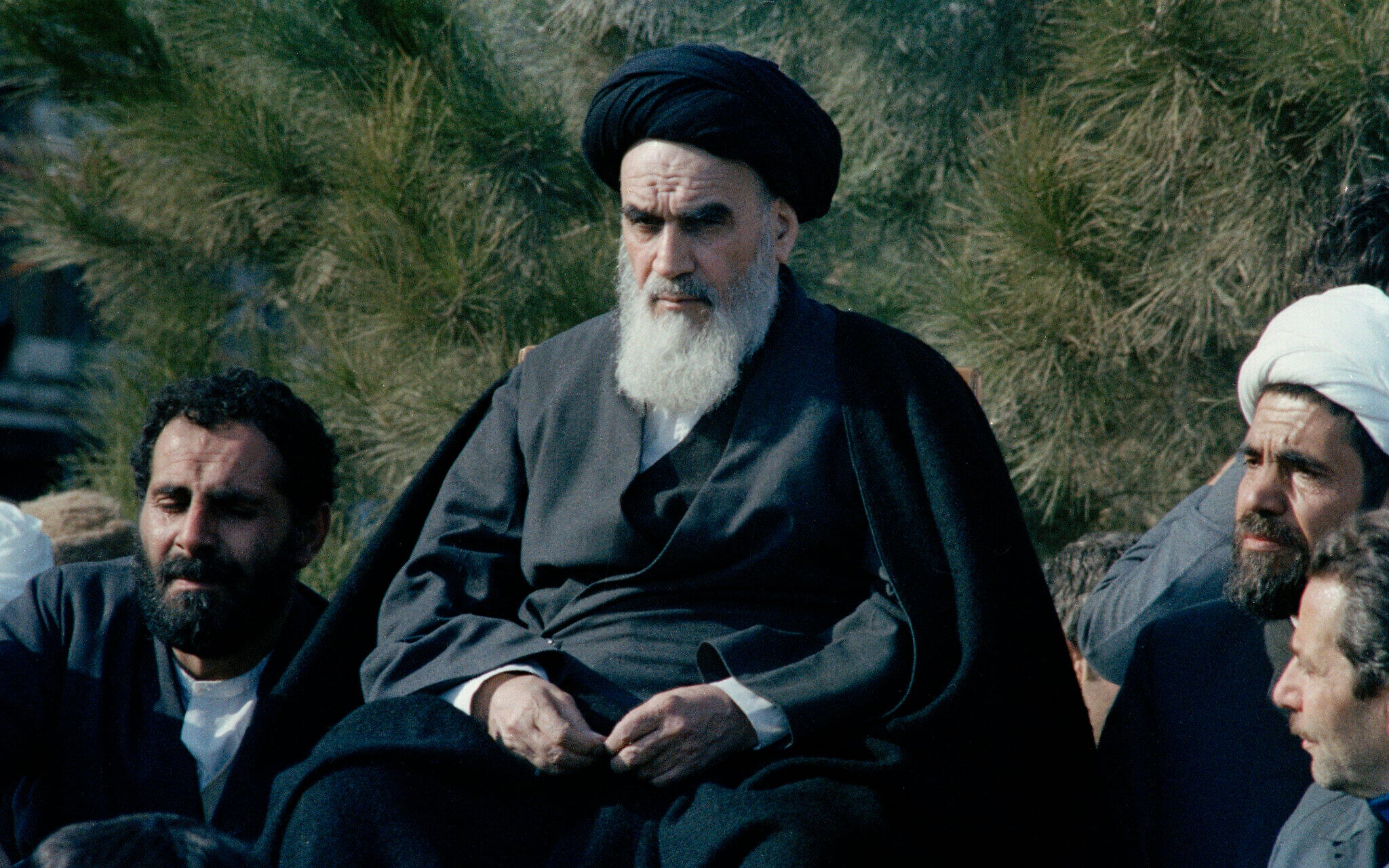 Ayatollah Ruhollah Khomeini in Tehran after 14 years in exile, February 1, 1979. (AP Photo/FY)
