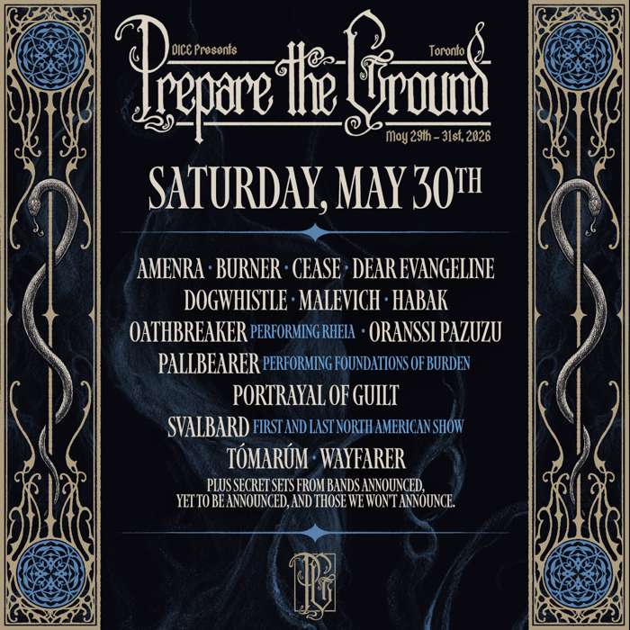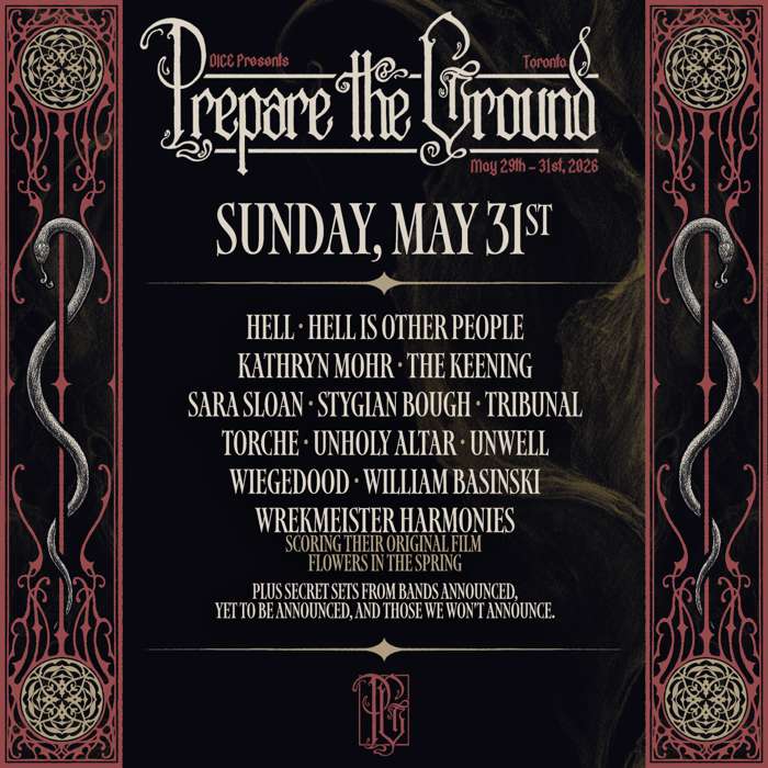 In their stead on Friday, May 29 we are honoured to welcome back one of the most important bands in North American Black Metal, Yellow Eyes. Their 2025 masterpiece Confusion Gate is wholly unique and truly special. We know they will bring a sonic and emotional heightening you’ve come to expect, and maybe even experienced at the first Prepare the Ground.