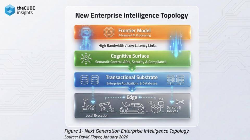 The more underappreciated layer is the Cognitive Surface. We have often referred to this layer as the System of Intelligence or SoI. This is where intent gets shaped, context gets assembled, constraints get enforced and outputs get turned into actions. It is also where the enterprise requirements live – security, policy, compliance, auditability, latency control and integration to existing systems.