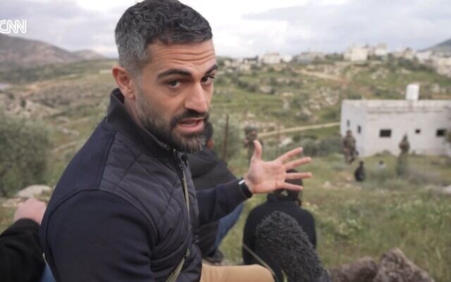 CNN correspondent Jeremy Diamond reporting near the West Bank village of Tayasir shortly before being briefly detained by IDF troops, March 27, 2026. (Screen capture: CNN)
