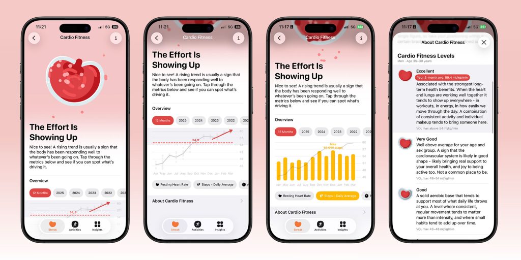 Staying true to the app’s focus on promoting healthy routines and the user’s overall well-being, Gentler Streak emphasizes VO₂ max trends instead of a single number.