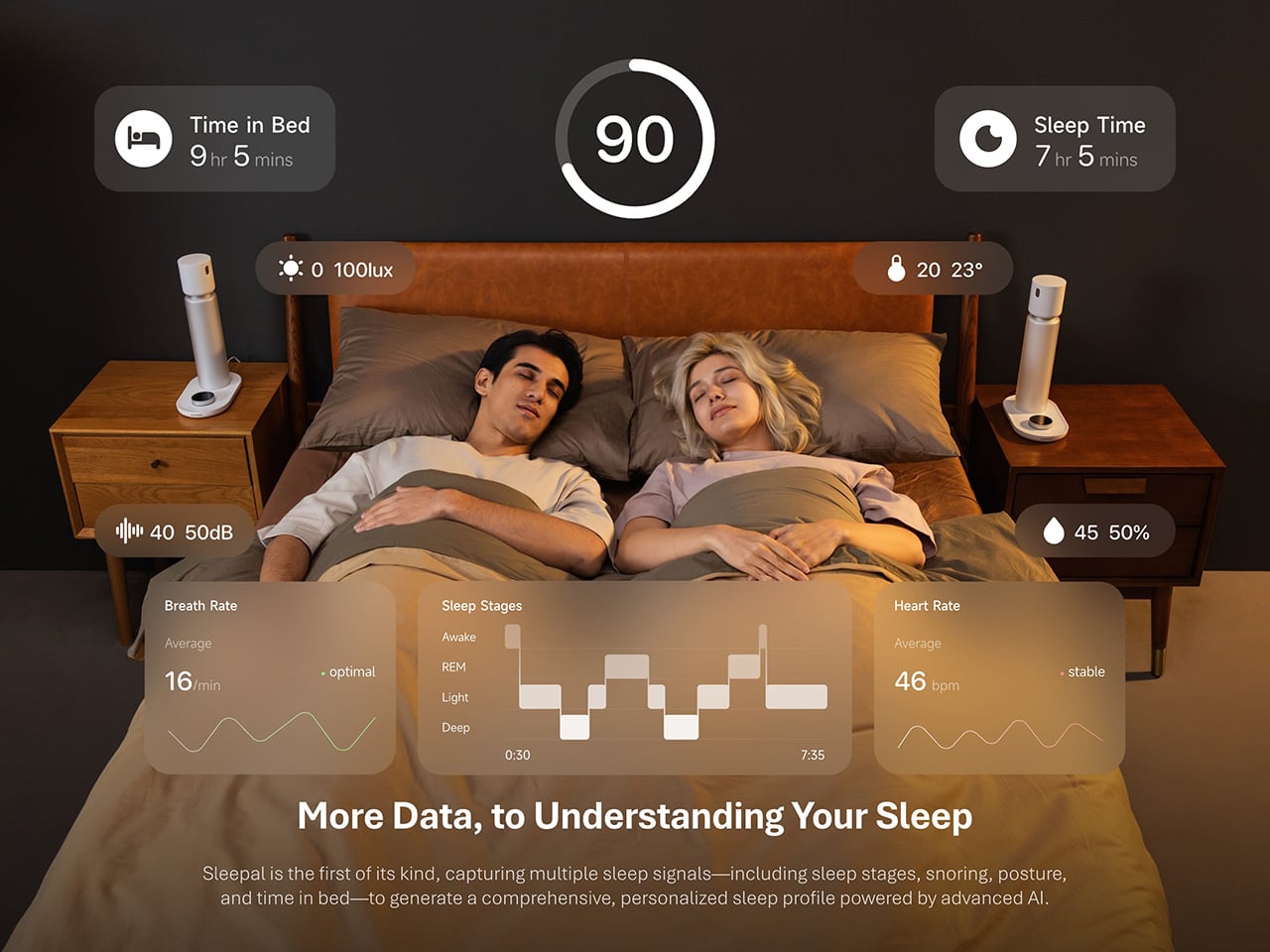 The irony, of course, is that wearing a device to bed can get in the way of the very thing you’re trying to improve. A watch or ring adds a layer of physical awareness that makes settling in harder, especially for someone who already struggles with sleep. Sleepal addresses that contradiction by embedding the tracking technology inside something already on your nightstand: a bedside lamp.