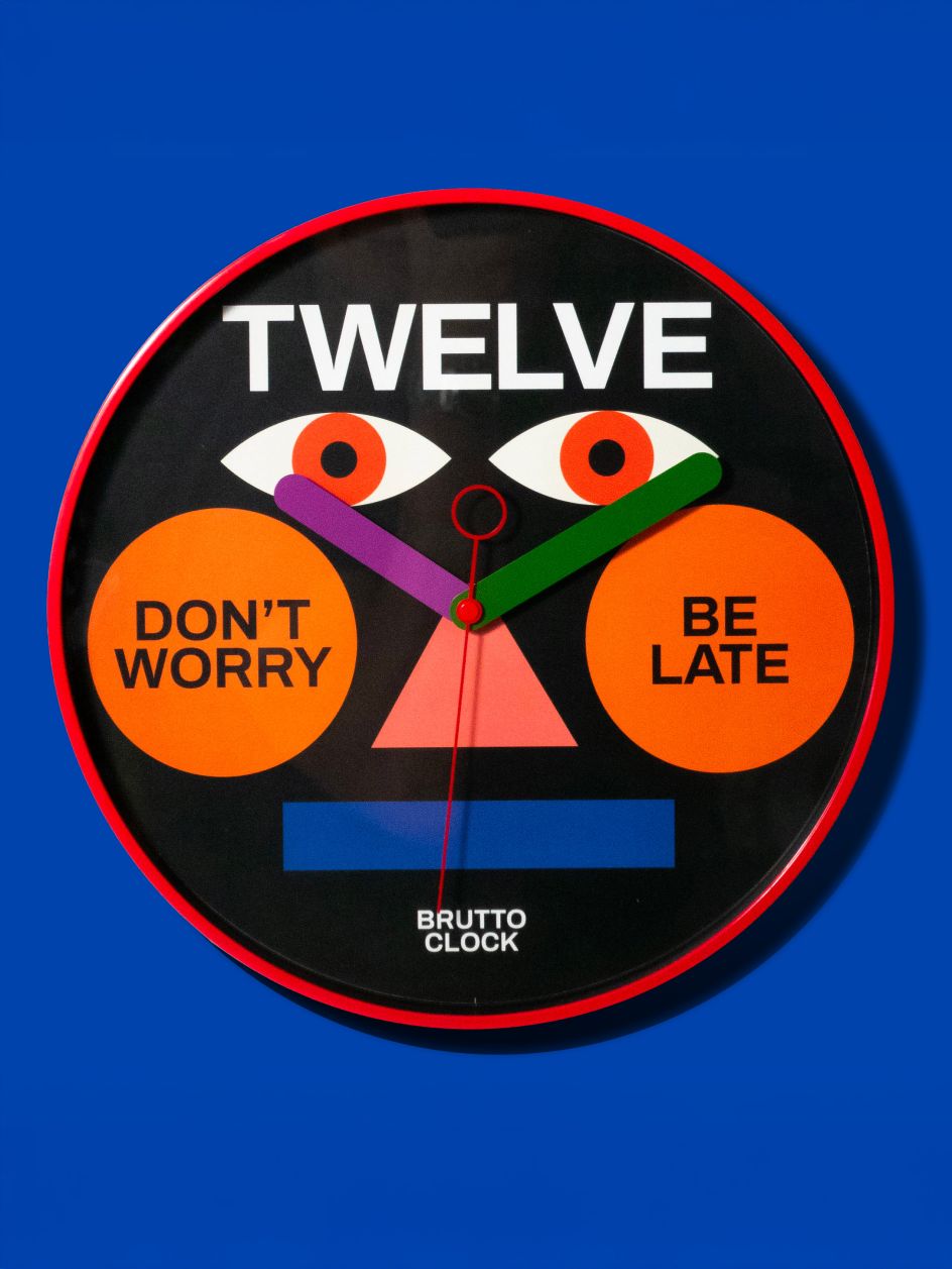This clock was co-designed with Samuel Canay, graphic designer and fellow Brutto collaborator. Together, they’ve made something that doesn’t just tell the time; it gently tells you to relax about it.