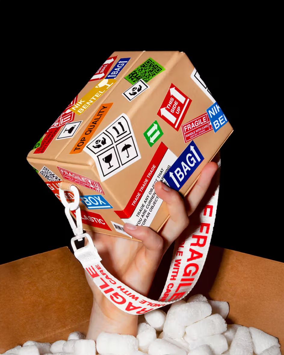 Yes, it’s a bag shaped like a cardboard box. No, it’s not a joke. Or rather, it is a joke, but an extremely well-executed one. Nik Bentel Studio’s Shipping Box Bag replicates every detail of a humble parcel: the folded structure, the shipping labels, the “handle with care” energy… only rendered in vegan leather with a magnetic opening that mimics a box flap. It’s small, slightly absurd, and genuinely thought-provoking.