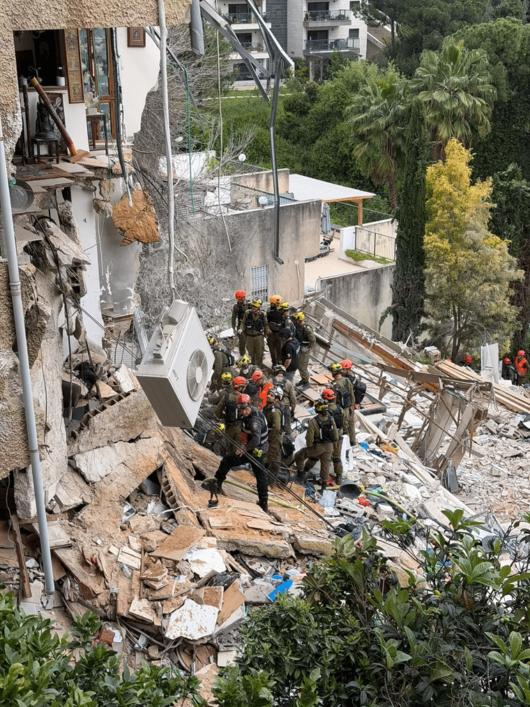 The day after the direct missile strike on Haifa, the full scale of destruction – and tragedy – came into view. The four trapped individuals whom rescuers had been searching for over many hours were located without signs of life and pulled from the wreckage. They were an elderly couple, their son, and his partner.