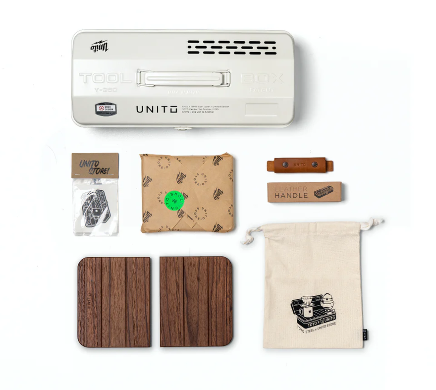 Unito, an outdoor goods design brand from Thailand, has partnered with Japan’s Toyo Steel to create this Unito X Toyo Coffee Box. The mash-up takes Toyo’s venerated steel Y-350 Camber-Top Toolbox…