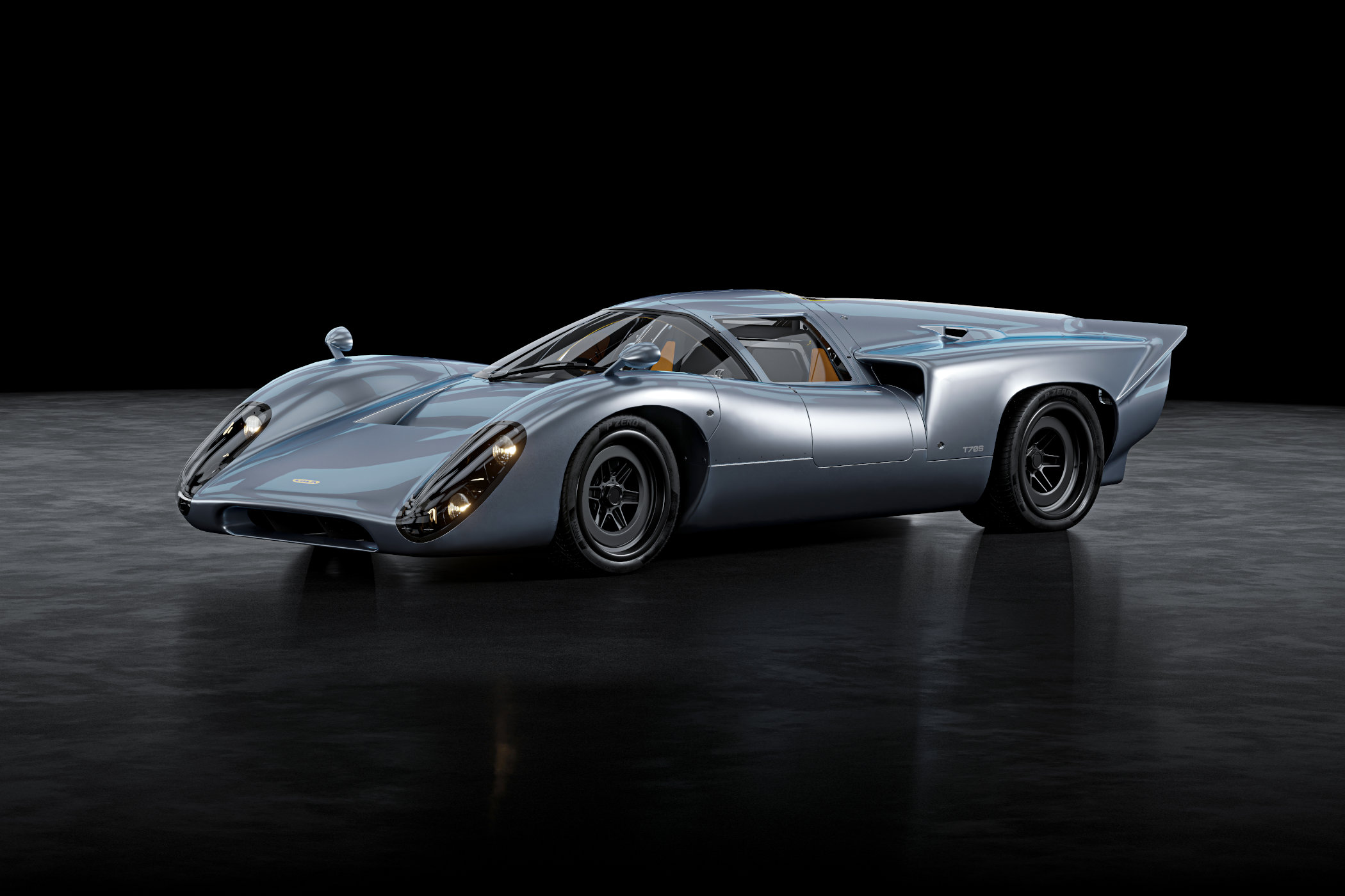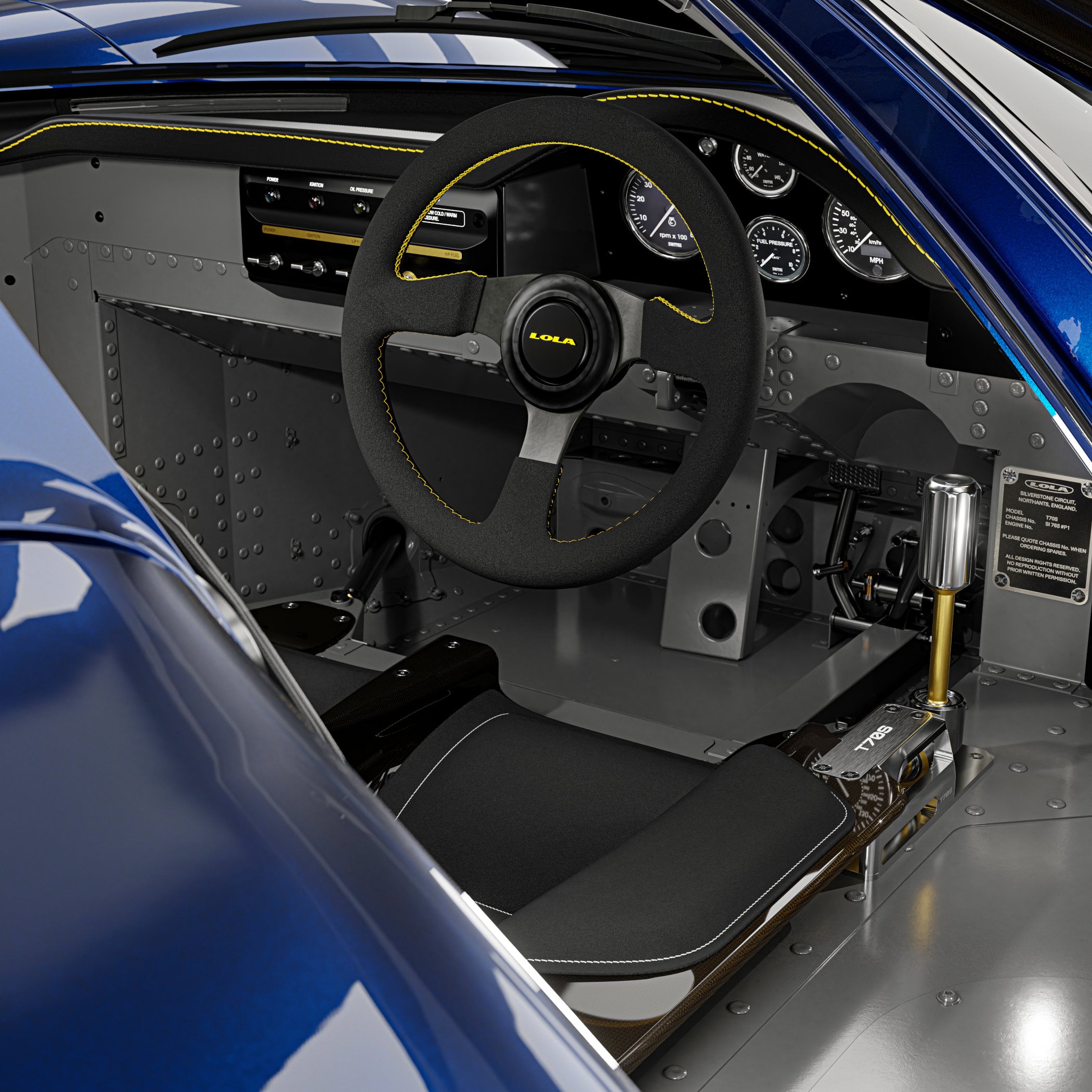 The newly developed T70S will be available in two variants, all using archival drawings and scans from an original car to achieve a perfect one-on-one recreation. The T70S will be the track-focused version, which you can see here in dark blue with yellow pinstripes in memory of the Sunoco sponsored Lola T70 that won at Daytona This puts down a similar power-to-weight ratio as the original T70, thanks to an aluminium monocoque chassis fitted with a 5.0-litre Chevrolet V8 producing about 500bhp, making light work of the 860kgs it puts on the scale. Power is fed through a Hewland five-speed transmission to the rear wheels only. The body is entirely made from a 100% petro-chemically free material that uses natural fibres and a plant-based resin. It sits on period-correct magnesium alloy wheels with knock-off wheel nuts and has a fully adjustable suspension geometry with double-wishbones on all corners.