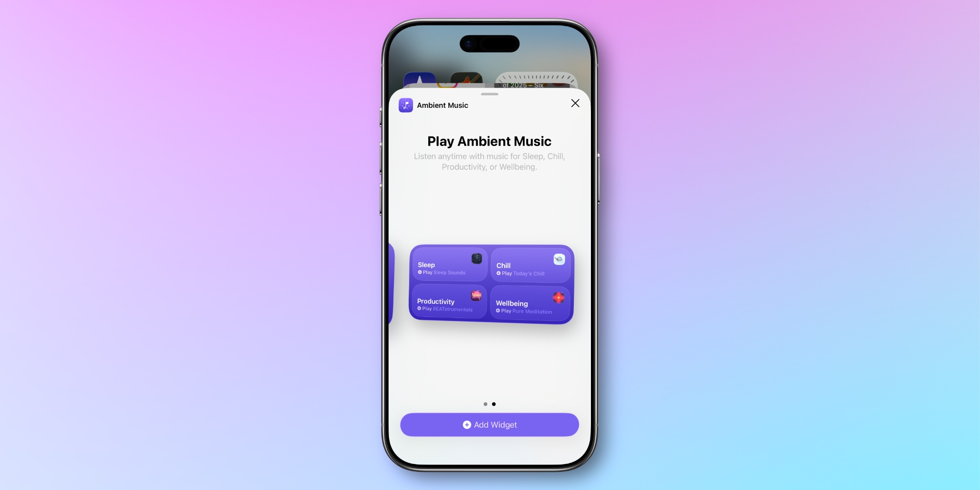 New ‘Ambient Music’ widgets let you kick off playback of up to four playlists fitting specific moods with a single tap.