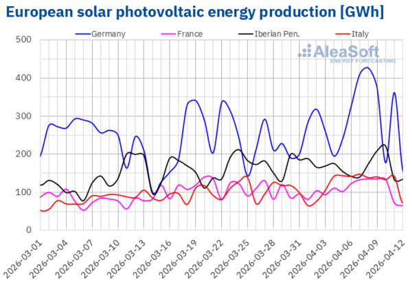 The German and French markets broke their records for solar energy production during a day in April, hitting 426 GWh on April 8 and 136 GWh on April 9 respectively. The Iberian markets registered their second-highest level for a day in April, with Spain registering 200 GWh and Portugal recording 22 GWh on April 10.