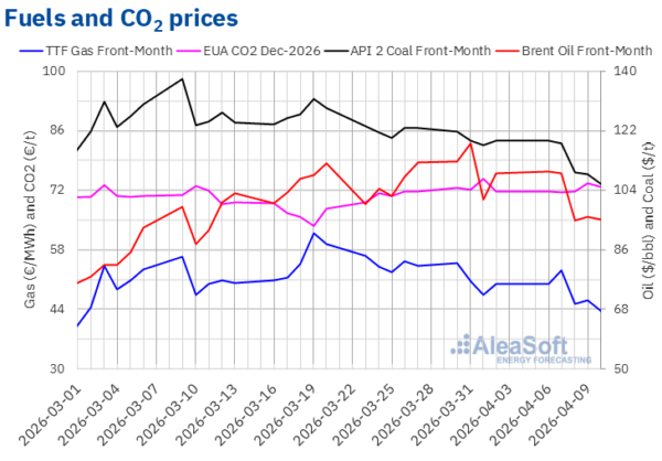 AleaSoft adds that declining gas and CO2 emission allowance prices also helped to bring prices down last week.