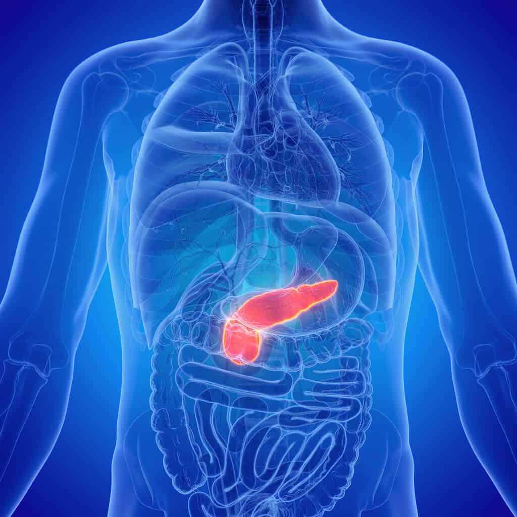 Anterior view of a human male pancreas 3D model. Credit: Wikimedia Commons