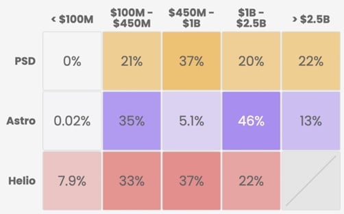 Table of the percentage of “high-impact” papers for each mission type and cost category. Credit - A.H.D. Koeppel & C. Dreier *Table of the percentage of “high-impact” papers for each mission type and cost category. Credit – A.H.D. Koeppel & C. Dreier*