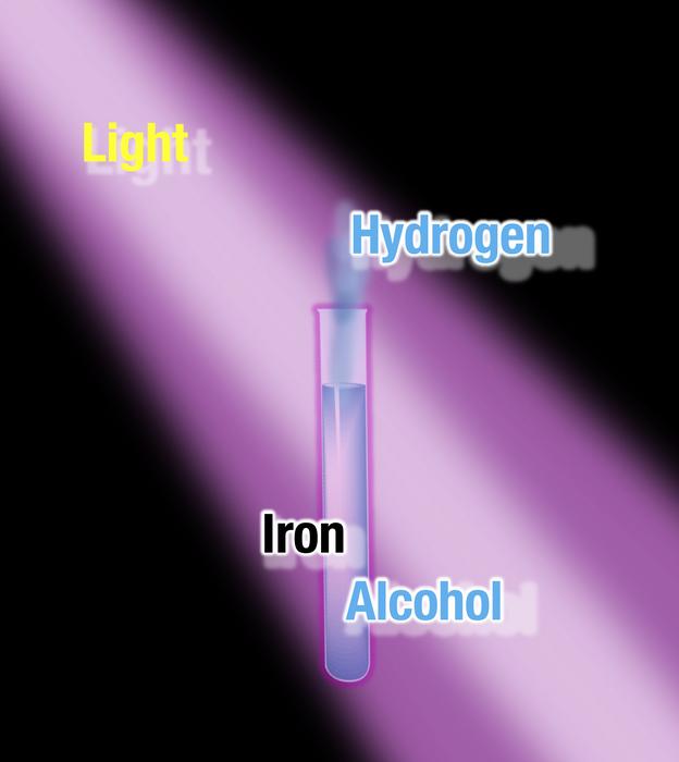 A massive release of hydrogen gas was achieved by mixing iron ions, sodium hydroxide, and methanol, then hitting the mixture with UV light.