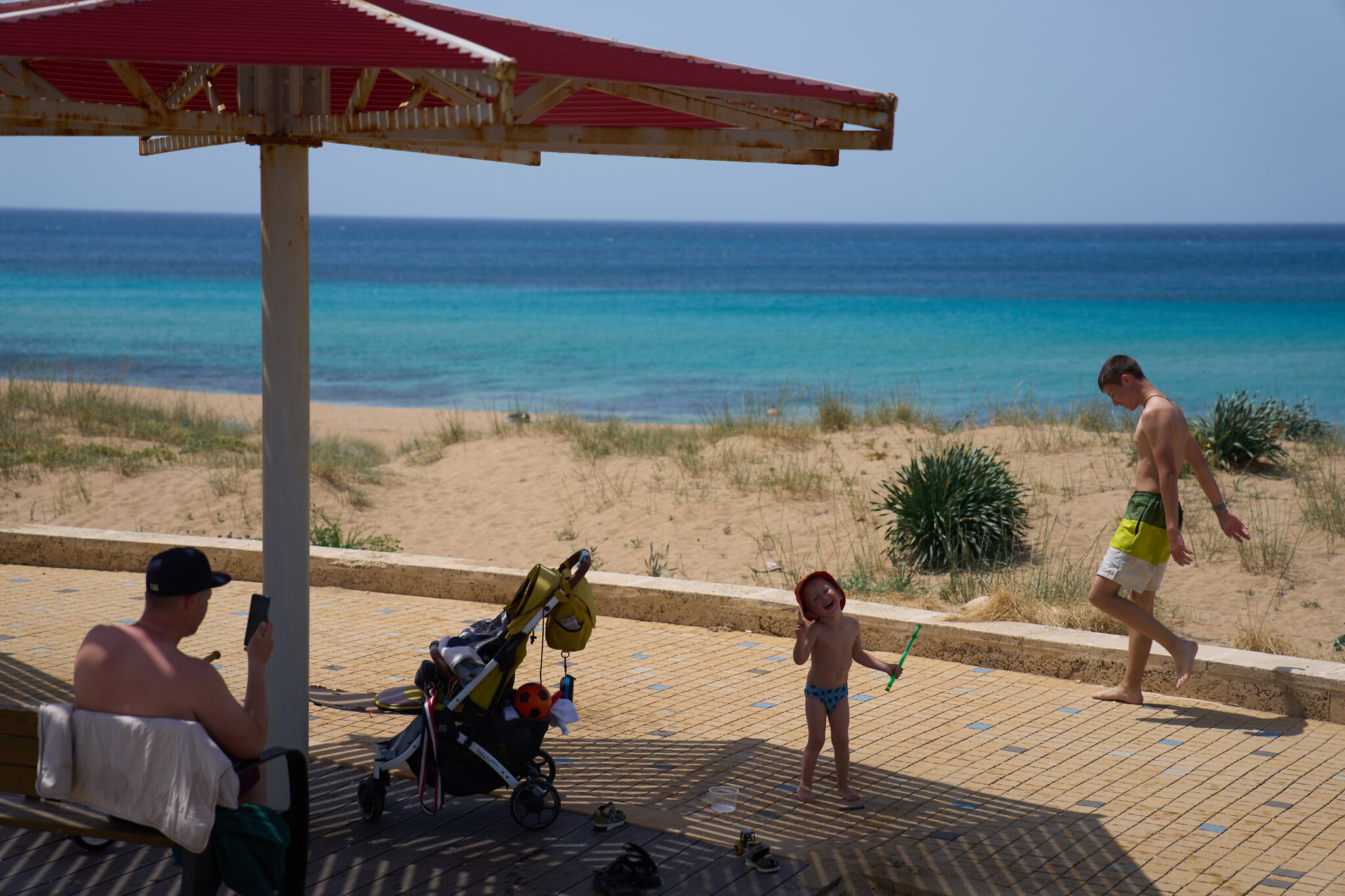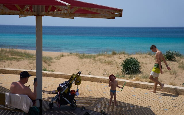 A family enjoys a day on the Mediterranean Sea in Nahariya, northern Israel, near the border with Lebanon, following a ceasefire between Israel and Hezbollah, Friday, April 17, 2026. (AP Photo/Ariel Schalit)