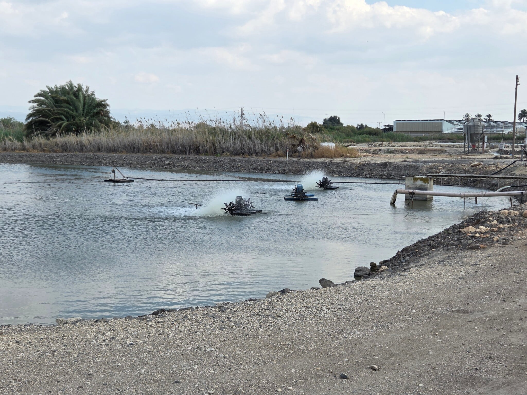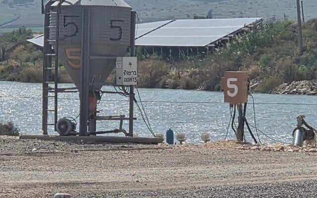 An active fishpond in Emek Maayanot, April 2026, (Aviv Lavie/The Times of Israel)