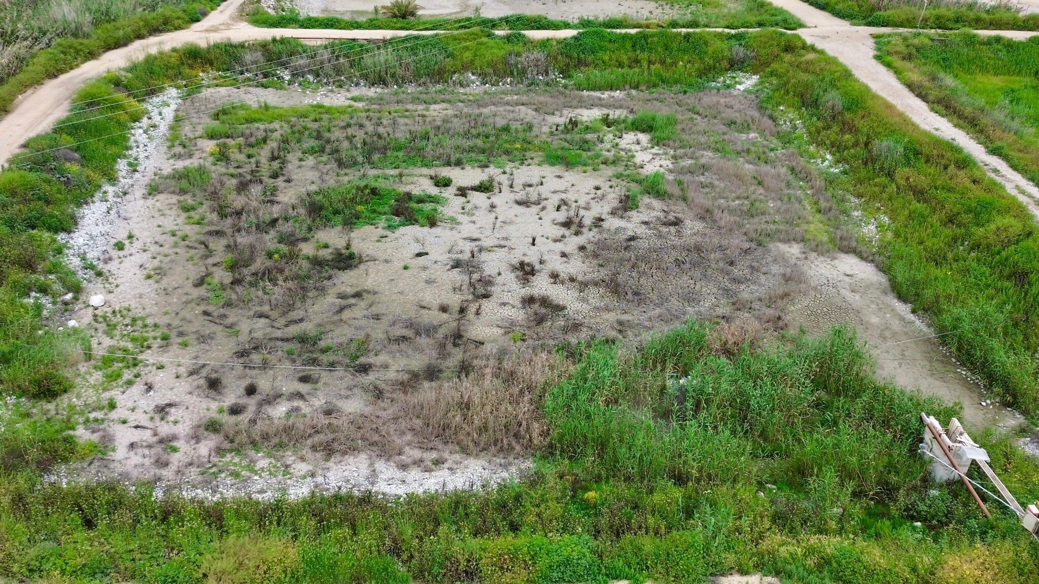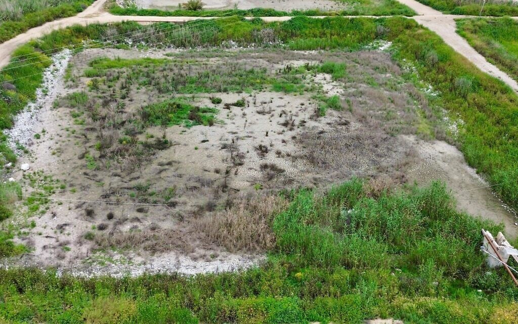 Dried up fishponds in Emek HaMaayanot, April 2026. (Courtesy)