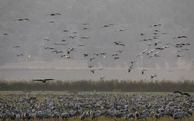Migrating Gray Cranes at the Agmon Hula Lake in the Hula Valley in northern Israel, November 16, 2017. (AFP Photo/Menahem Kahana)