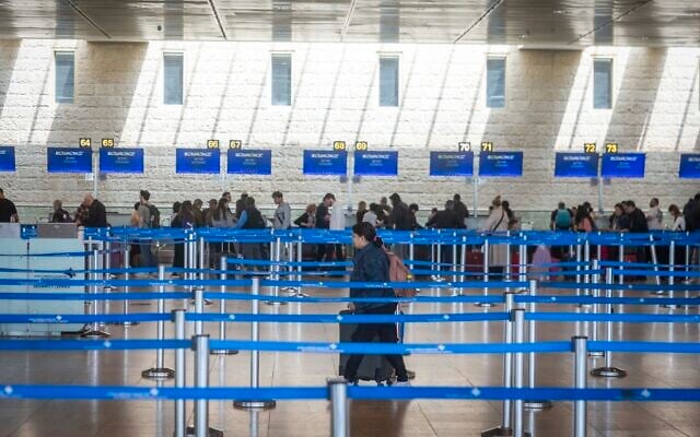 Illustrative: Passengers at Ben Gurion Airport near Tel Aviv, April 9, 2026. (Chaim Goldberg/Flash90)