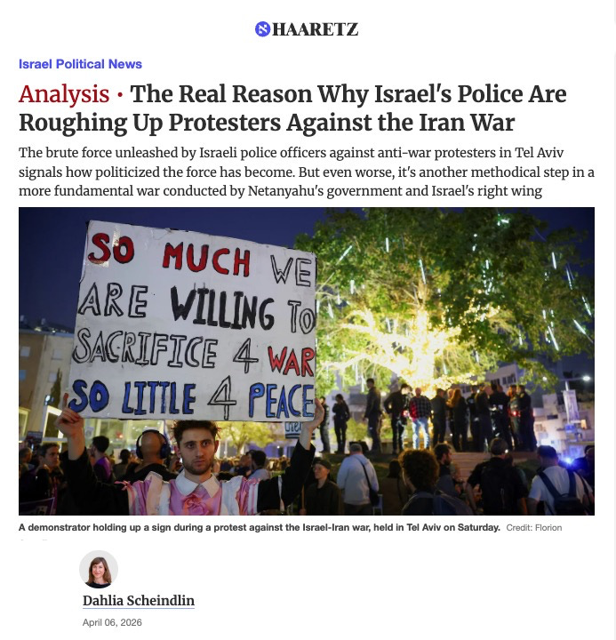 But if you follow the daily press here closely, you can’t help but notice the reports of police force being used against protesters, often when it’s not entirely clear why. Is this a command from Itamar Ben-Gvir at the top, because he doesn’t like protesters, or is there something more insidious at play?