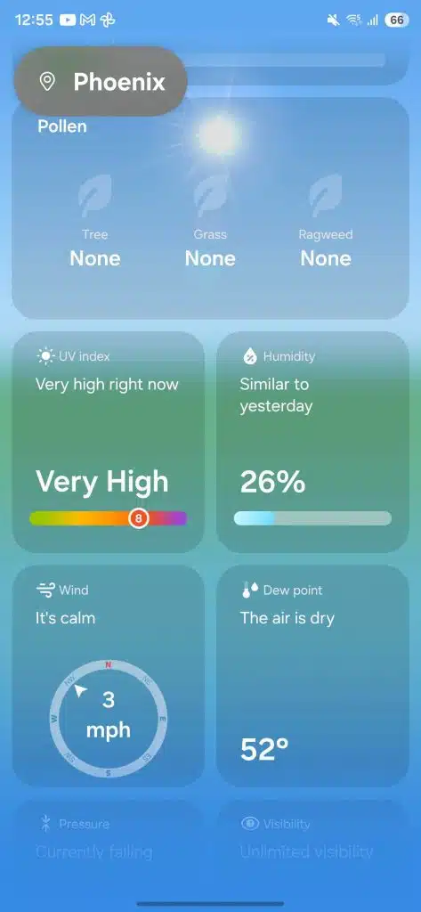 Next up, the Weather app is also seeing visual updates in One UI 8.5. A major change is the addition of color gradients along the edges of the screen, which creates a softer and more polished look. The search bar has been moved to the bottom when you tap the search icon. On the main screen, the location name is now highlighted in a box, making it easier to spot at a glance.