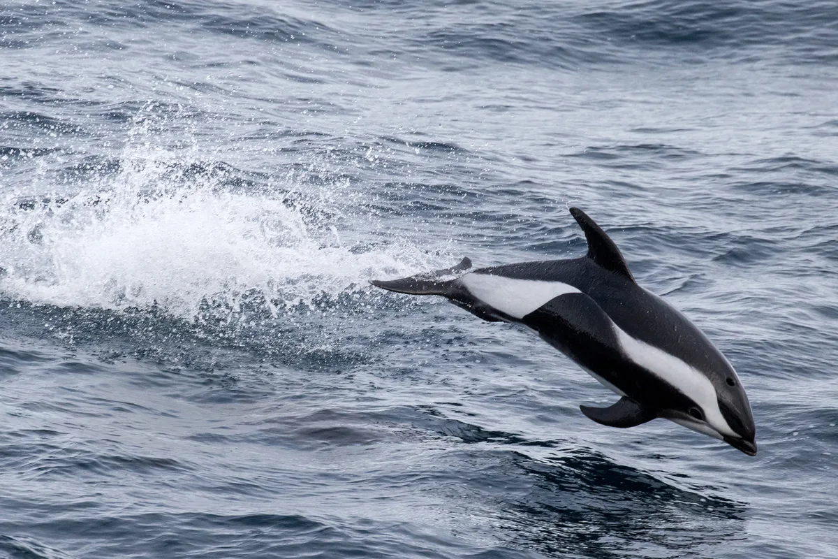 The hourglass dolphin’s striking appearance makes them look like they were created by a graphic designer. They prefer the cold and live in deep Antarctic and sub-Antarctic waters – in fact, they are the only small dolphin regularly found south of the Antarctic Convergence, the line where cold and warm water meets.