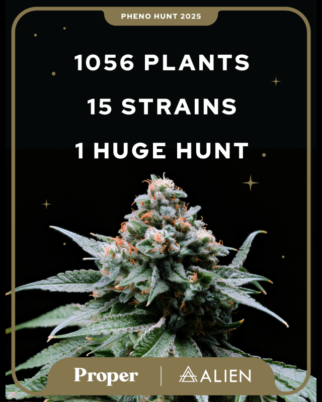 The Proper x Alien Genetics pheno hunt marks the beginning of an exciting collaboration between two leaders in cannabis innovation, merging Proper’s cultivation excellence with Alien Genetics’ storied legacy.